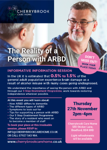 Get in touch with us to book your space at the talk. We look forward to sharing our experience of alcohol related brain damage (ARBD).
